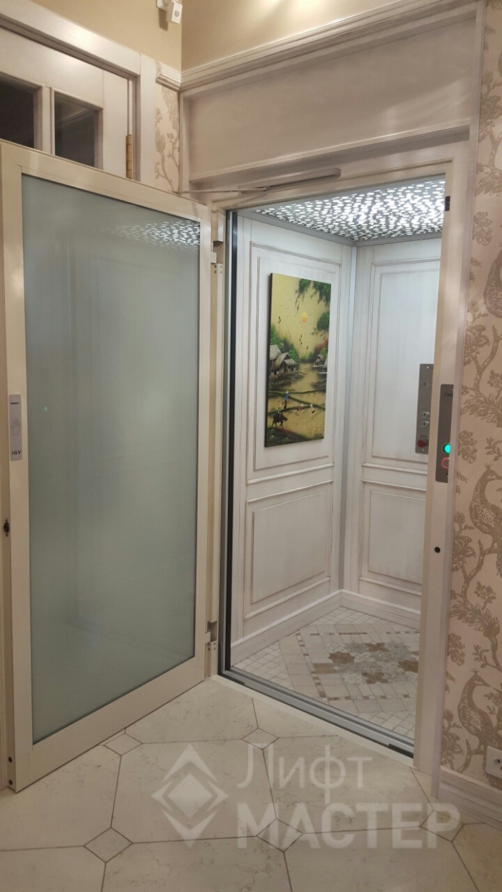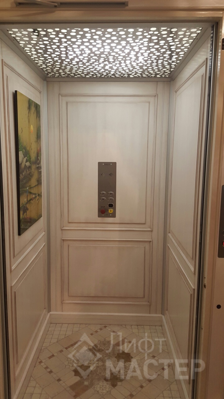 Облицовка данного лифта отделочными материалами производилась после установки лифта. Т.к. Заказчик выбрал дизайн лифта не из каталога завода производителя. 2015 год.